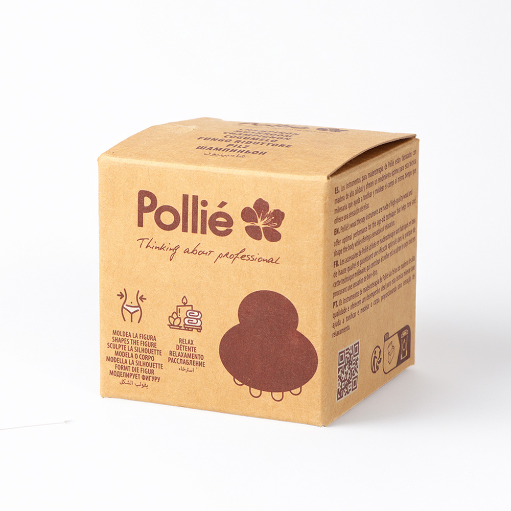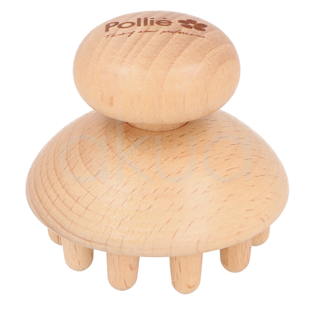 - Está fabricado en madera natural de alta calidad, con una “cabeza” redondeada como empuñadura y una base en forma de seta con varios pivotes cilíndricos que ejercen presión profunda sobre la piel.