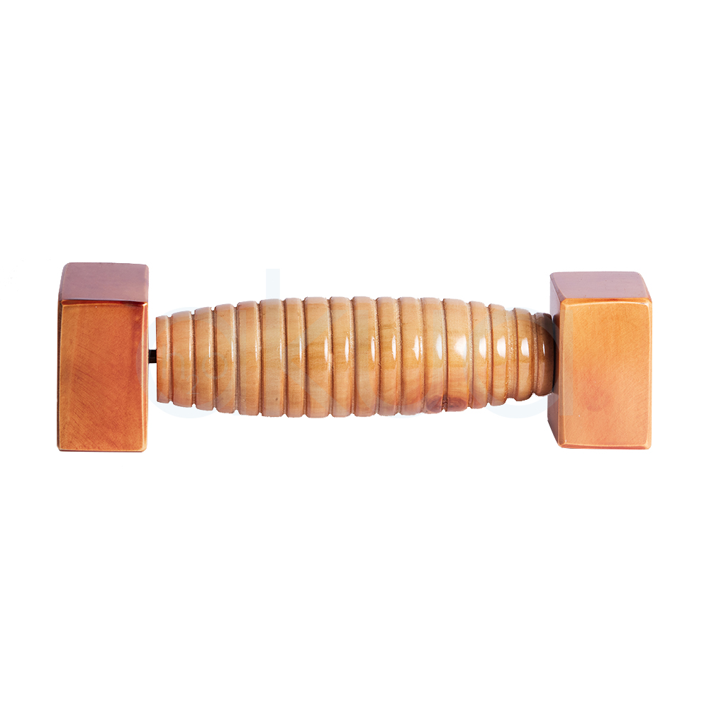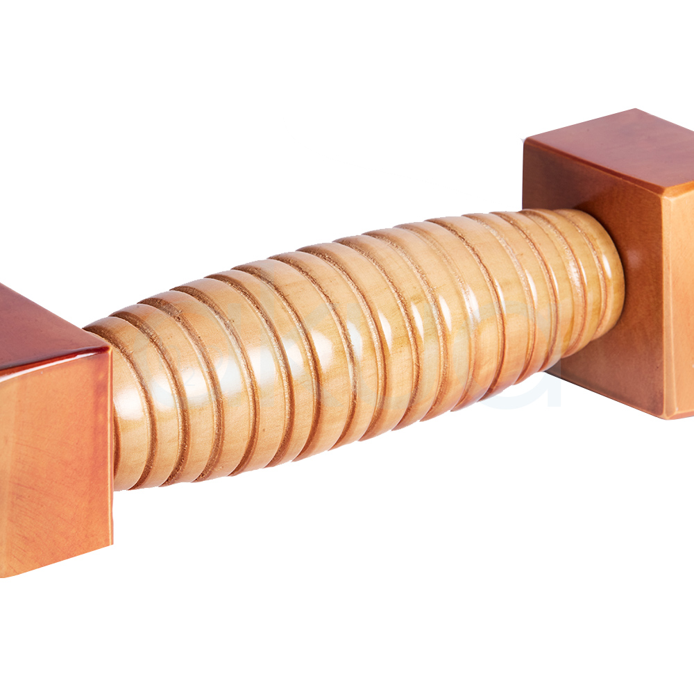 Rodillo de madera diseñado para estimular las zonas reflejas de la planta del pie, aliviar la fatiga y mejorar la circulación.
