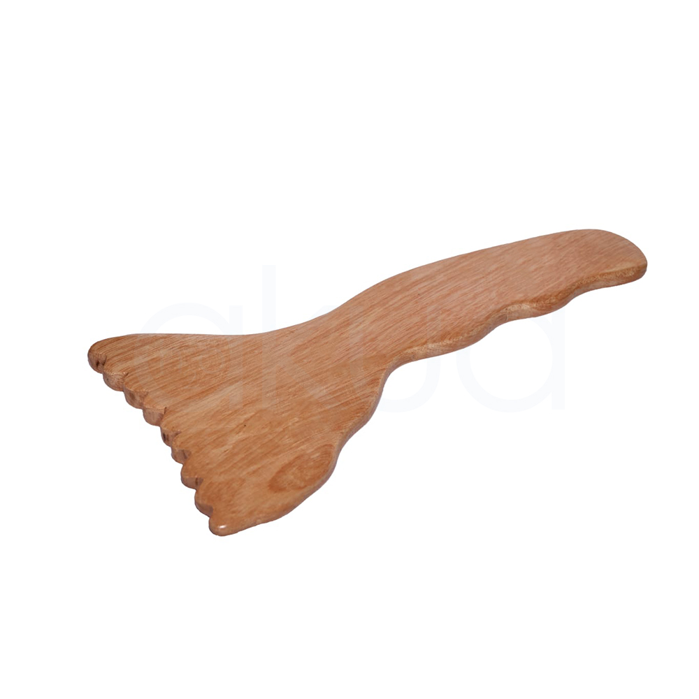 - La zona ancha tiene “dientes” o relieves redondeados que aumentan el efecto de raspado, mientras que el mango es ergonómico para trabajar cómodamente zonas amplias como muslos, glúteos, caderas y abdomen.