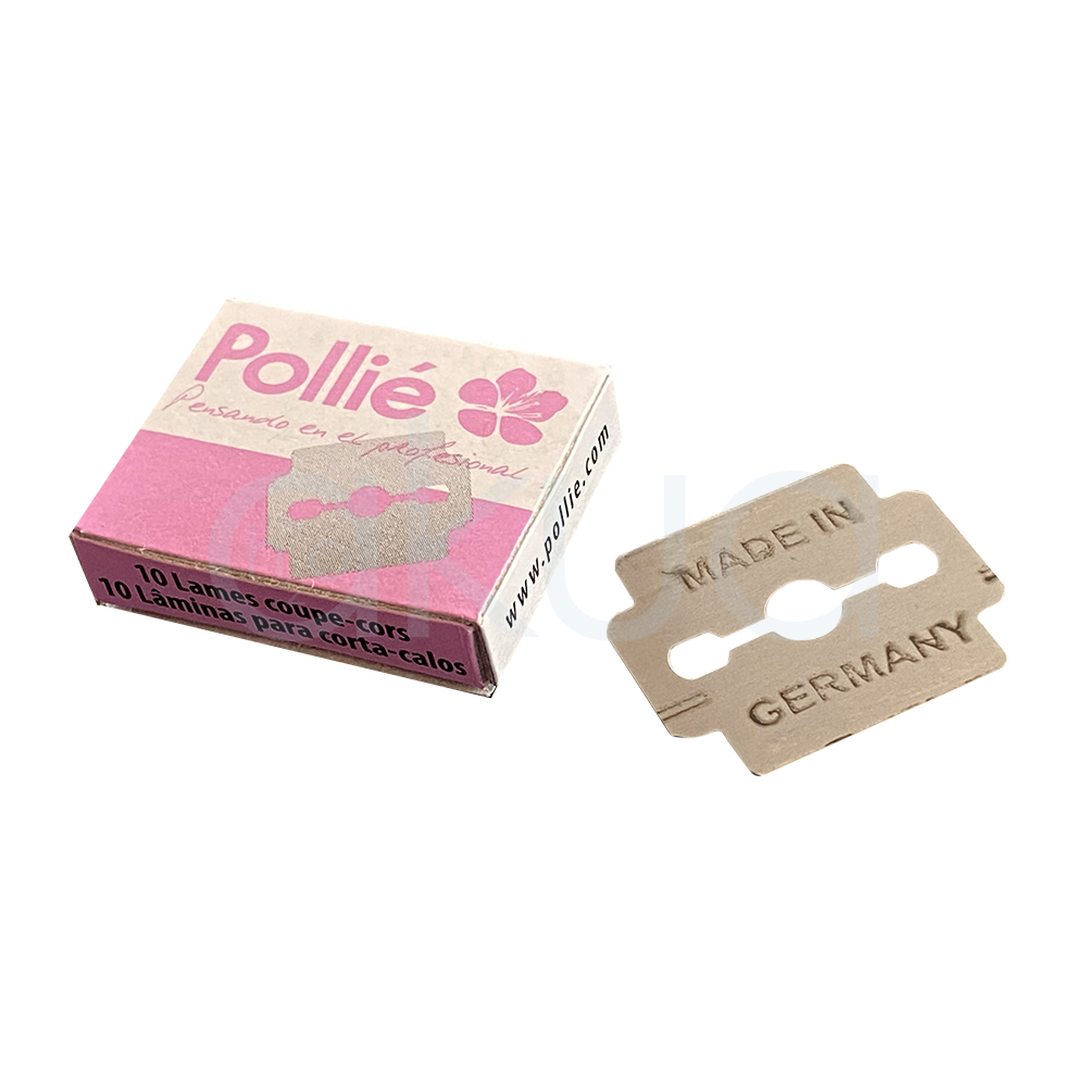 Las cuchillas Pollié son láminas de recambio diseñadas específicamente para usarse en corta-calos o cortacallos. Su función principal es la eliminación eficaz de callosidades y durezas en los pies, permitiendo retirar de forma precisa las capas de piel muerta o engrosada que se acumulan en zonas de presión, como plantas y talones.