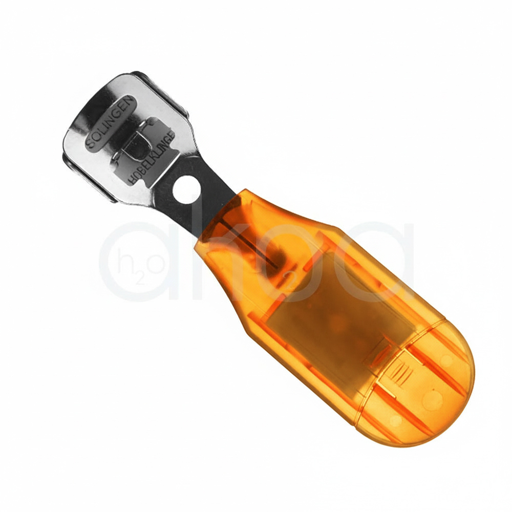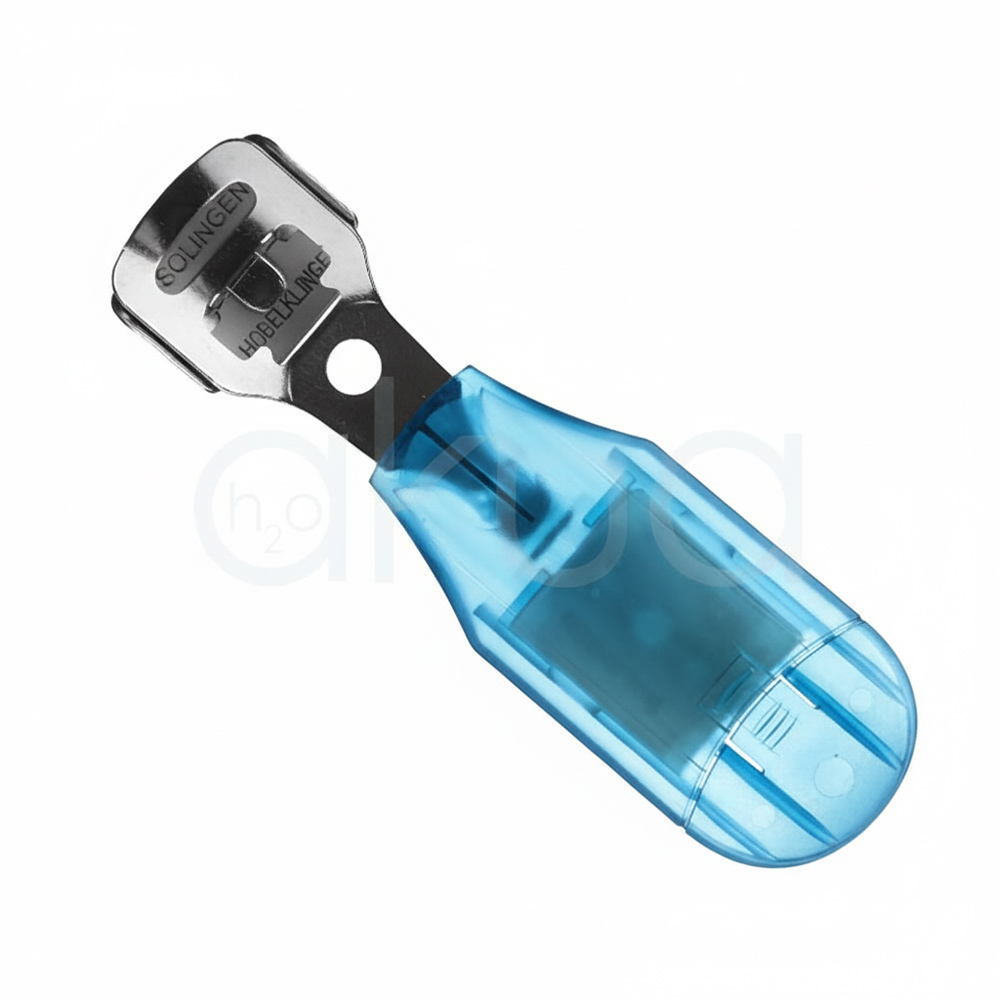 Aplicación: Coloca plano sobre callo/talón, desliza suave sin presión excesiva (corta capas finas). Zonas difíciles: ángulo 45°. - Final: Limpia residuos lima, hidrata. Desinfecta alcohol; cambia cuchilla uso. No diabetes/sensible