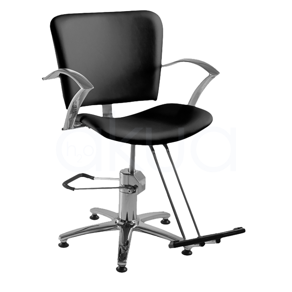 Sillón para peluquería con brazos cromados de alta calidad.