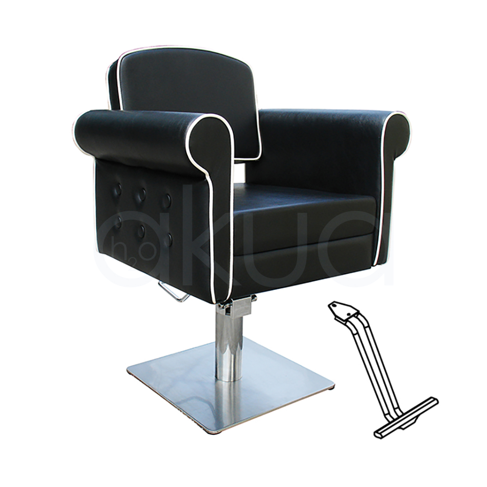La silla de peluquería STYLE tiene un diseño vintage que combina líneas curvas, en color negro y con las costuras blancas, pensadas para dar la máxima comodidad.