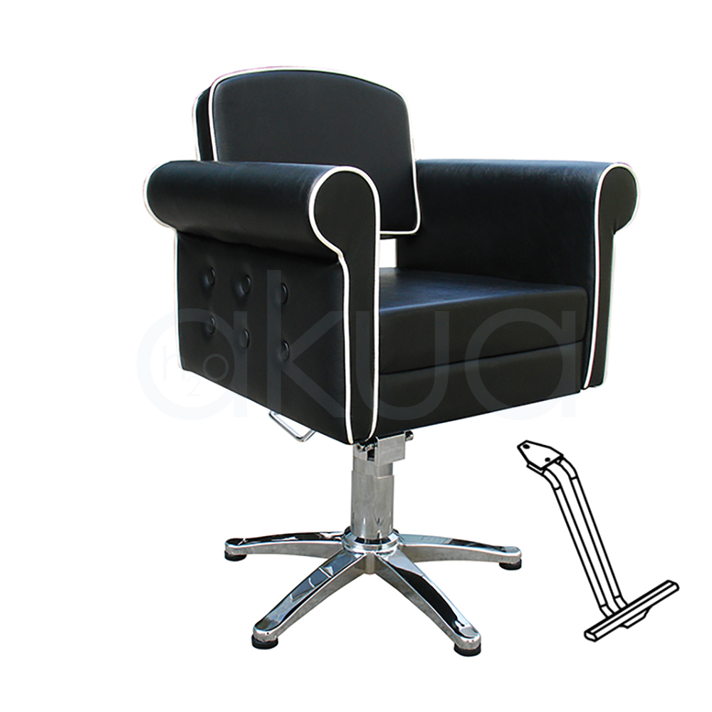 La silla de peluquería STYLE tiene un diseño vintage que combina líneas curvas, en color negro y con las costuras blancas, pensadas para dar la máxima comodidad.
