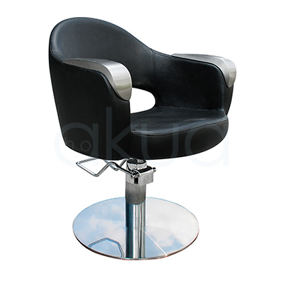 El sillon de peluquería ART tiene un diseño moderno que combina líneas curvas, en color negro y con acabados en plata, pensada para dar la máxima comodidad.
